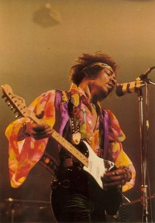Jimi Hendrix moved through the world radically, draped in velvet, lace, distortion, and fire.